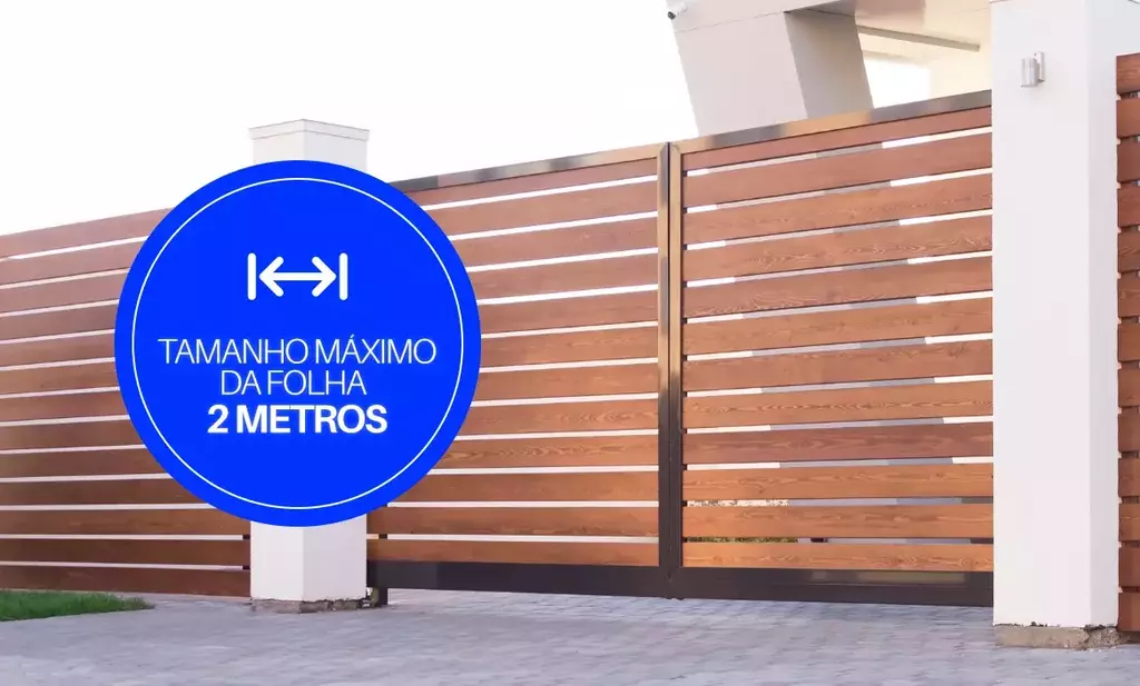 Estruturado com capacidade para folhas de até 2 metros (de acordo com o tamanho do acionamento) dispõe de compatibilidade com uma variedade de instalações. É fundamental verificar as metragens do portão para garantir conformidade com as especificações.